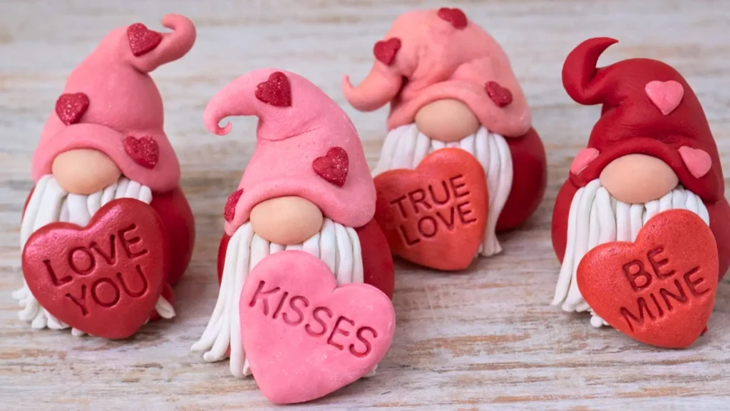 The conversation hearts are the easiest win. Roll clay to about half an inch thick, cut heart shapes, and round the edges with your fingers. Press words using alphabet stamps or a toothpick before baking. Paint the letters after and wipe away extra for clean lines.