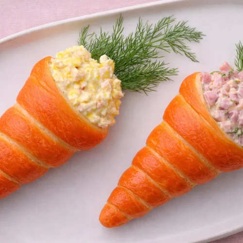 Egg or Ham Salad Stuffed Crescent Roll Carrots