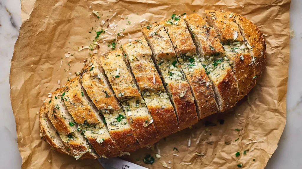 Here’s another quiet trick. I let the loaf rest for 5 minutes before serving. That short rest helps the butter settle. It also stops the first slice from sliding around like it’s on skates.