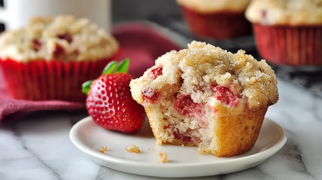 What makes these work is balance. You want enough strawberry pieces for real flavor. You also want enough structure to hold them. Too little flour, and the berries sink into chaos. Too much flour, and the crumb turns tight. That’s why people sometimes describe fruit muffins as tricky. They aren’t tricky. They’re just less forgiving than they look.